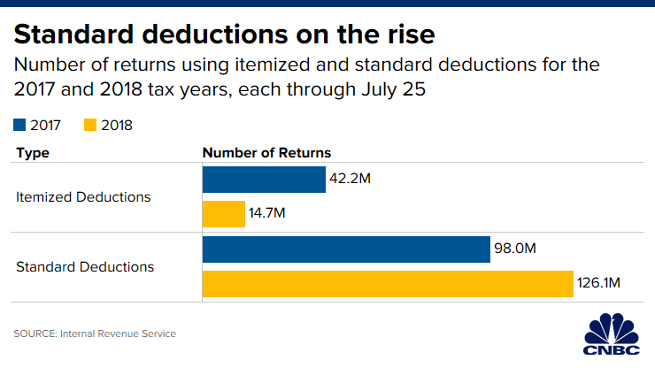 In comparison, 42.2 million returns filed for the 2017 tax year used itemized deductions, according to IRS data through July 25, 2018.